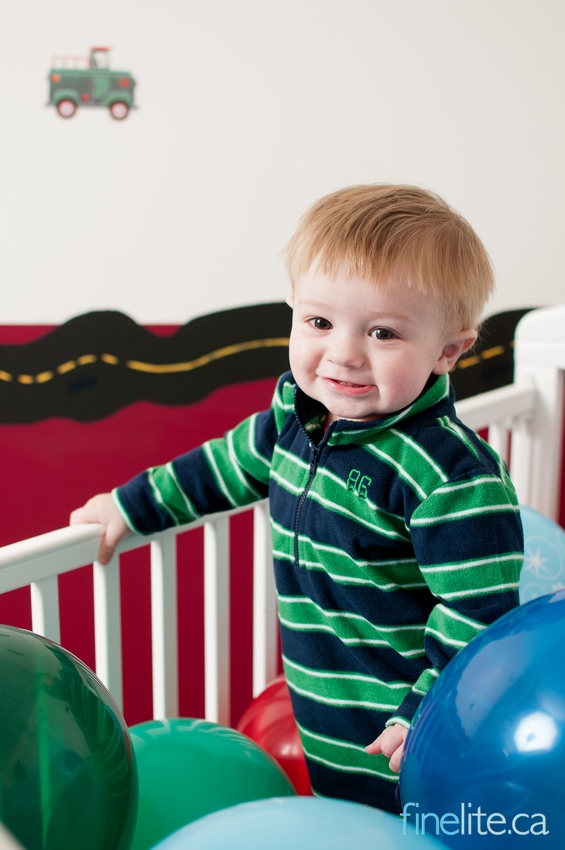 This is Christopher. He’s 1. He’s also a very busy boy! Learning to walk, dragging around a HUGE red dog (Clifford anyone??) and knocking over block towers are all in a day’s work for this little man. He wasn’t too sure about the balloons in the crib, but warmed up once we started tossing them around and acting silly. Such a charmer – kissable little toes and those eyes!! Look out world.